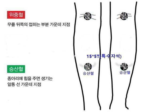 무릎 오금 중앙 위중혈 특수자석 15*5T 부착