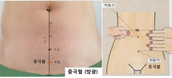 중극혈은 배꼽아래 4치 지점입니다