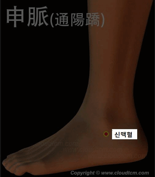 척추 교정을위해서 후계혈과 신맥혈을 사용하고