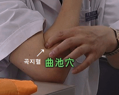 치료혈자리가 팔꿈치 모서리 바깥쪽 소장 소해혈과