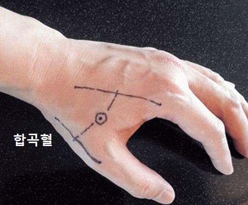 곡지혈과 양곡혈에 특수자석을 붙혀주면 통증이 더 심해질수 있습니다