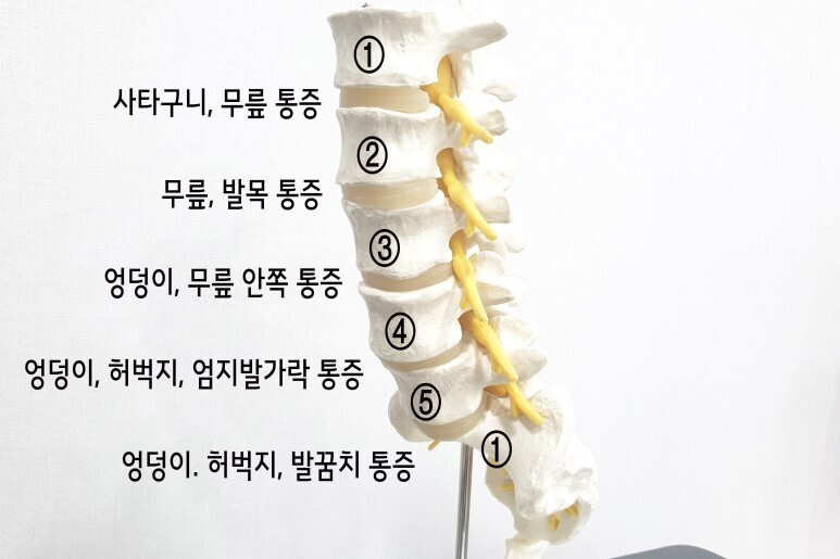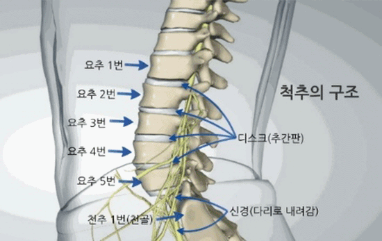 요추4번~5번사이 디스크가 삐져나와 하지로 내려가는 신경을 압박하게되면