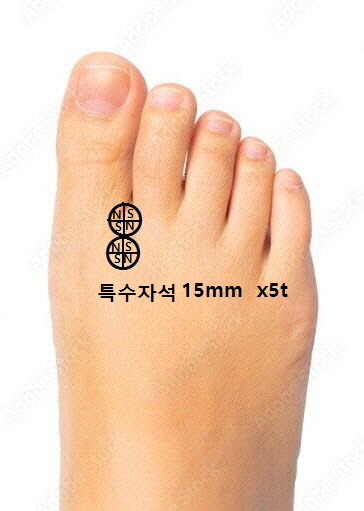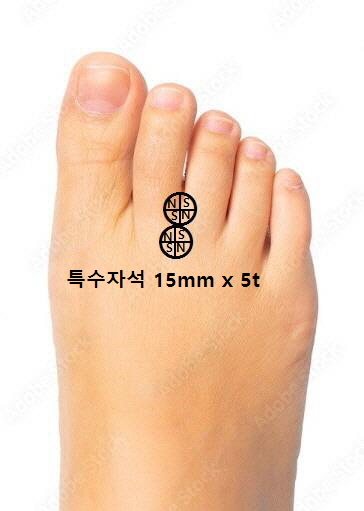 통증이 느껴지는곳에 특수자석(N극 S극 8개 교차반응) 20*T를 붙혀줍니다