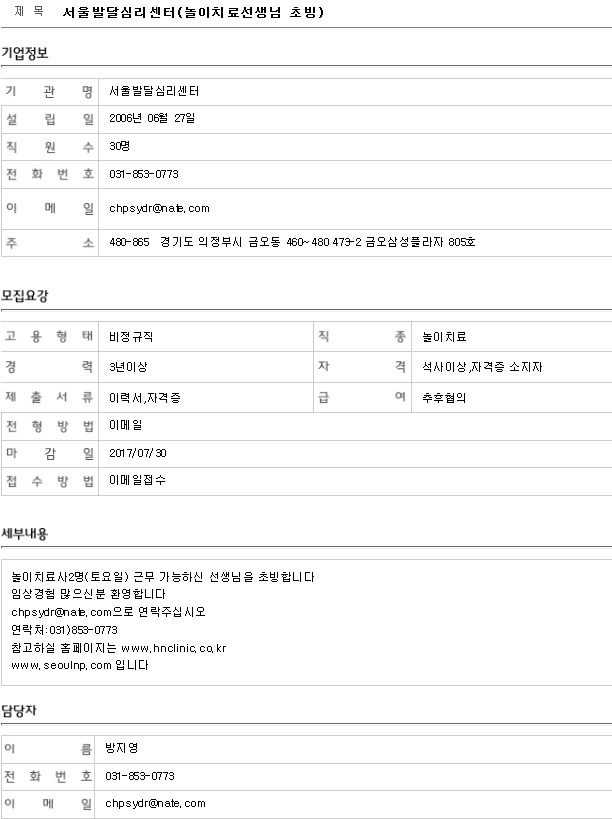 놀이치료사 모집/ 진로직업체험/ 체험프로그램/ 애니미술치료 작성자애니짱|작성시간17.06.14|조회수9 목록 댓글 0 글자크기 작게가 글자크기 크게가 다음검색 현재 게시글 추가 기능 열기 북마크 공유하기 신고 센터로 신고 댓글 댓글 0 댓글쓰기 답글쓰기 댓글 리스트