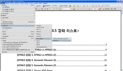 3. Adobe Acrobat Professoinal의 [파일] -> 내보내기 -> PostScript -> PostScript를 선택하여, PostScript 파일을 생성한다.