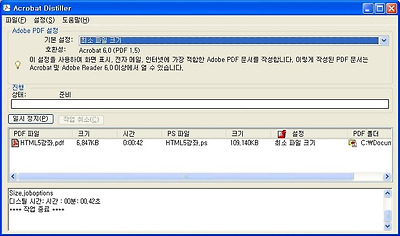 6. 위 과정에서 생성 된 PostScript파일을 Adobe Acrobat Distiller로 드래그 하면 파일축소 생성이 이루어진다.