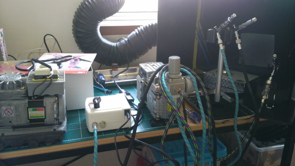 일단 책상에 올려 놓을 수 있는 제품 세대. 세 제품 모두 에어브러쉬에 연결된 상태에서 촬영하였습니다.