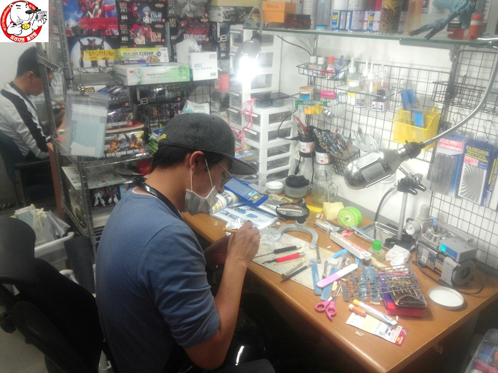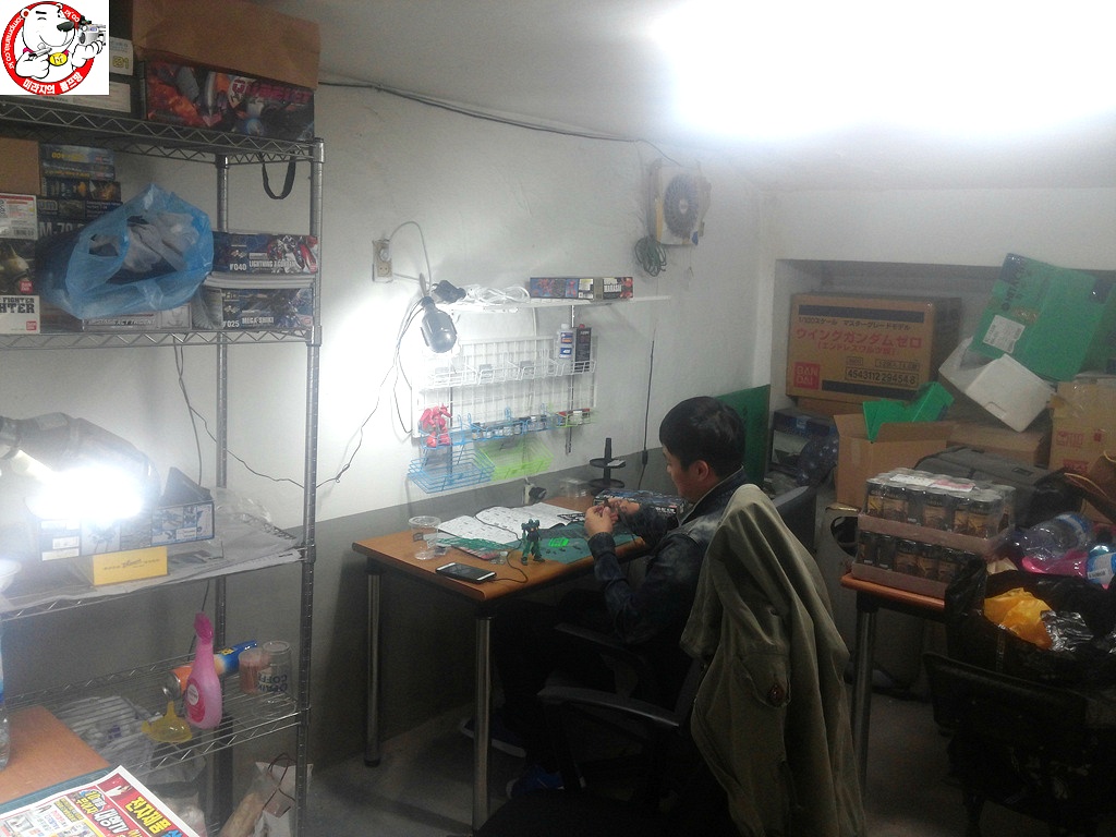 [공방에 대하 궁금해 하시는데..미라지공방은 지하에 있습니다. 같은 건물 3층은 제 개안 작업실인 동시에 일종의 매장 역활을 하는곳이고요.. 많은분들이 착각을 하시는게 그 수많은 킷들도 쌓여진 3층 어디서 작업을 하냐는 문의가 많은데.. 작업은 지하에서 하고 있습니다. (물론 저는 개인작업대로 3층에 작게 작업대를 만들어 작업합니다.) 사용방법은 3층에서 제품 구경.. 구매한후 지하에서 작업 및 도색을 할수 있는 시스템입니다. 일종의 이케아 같은 시스템 이랄까요..? ]