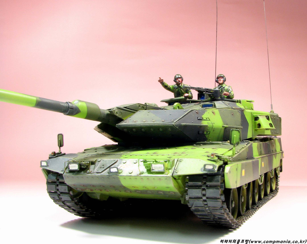 [Strv-122 는 독일의 레오파트2A5 를 스웨덴군 요구사항에 맞추어 개량한 것으로 레오파트2 a5 중 가장 성능이 우수한것으로 알려져 있습니다. 내부적으로는 최신 버스데이타 시스템의 도입등이 이루어졌고 외부적으로는 스웨덴군 특유의 발연탄 발사기와 포탑후부의 대형바스켓등이 특징입니다. 하비보스 제품은 그 특징을 비교적 잘 잡아내고 있습니다]