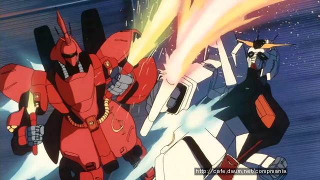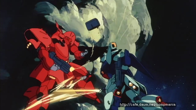 [지구연방을 위협하던 네오지온의 하만칸이 사라진 UC93년..UC88년 티탄즈와 에우고의 마지막 전투였던 그리프스 전투에서 실종된 샤아아즈너블이 새로운 네오지온군의 총수로 등장하게 되면서 스토리는 시작됩니다. 첫 전투부터 아무로 레이의 탑승기 리가즈와 샤아의 탑승기인 사자비의 불꽃튀는 격투씬이 시선을 쏙 빼놓습니다.]