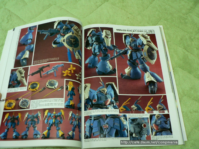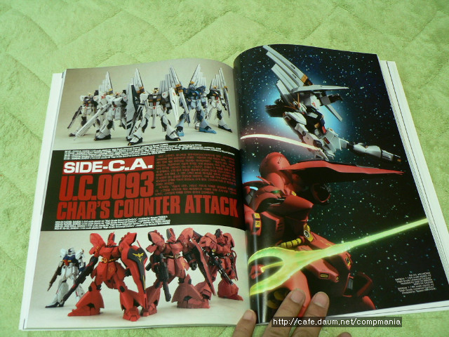 그 이후로는 샤아 아즈너블의 기체들로 이루어져 있습니다.즉 사자비를 비롯 기라도가, 야크르도가등을 주로 다루고 있고 간간히 HGUC (반다이가 만드는 1/144 스케일 건담류 에어로로 치면 1/72 스케일 정도 된다) 뉴건담과 리가지 등의 작례가 나오기도 합니다.