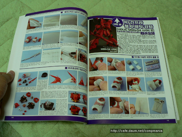 특히 고급유저용에 해당되는 하야시 텟페이의 HGUC MSN-04 사자비 편(142~147p) 제작방법은 건담모형을 개조하거나 자작하려는 분들께 많은 도움이 되는 내용들이 가득합니다.