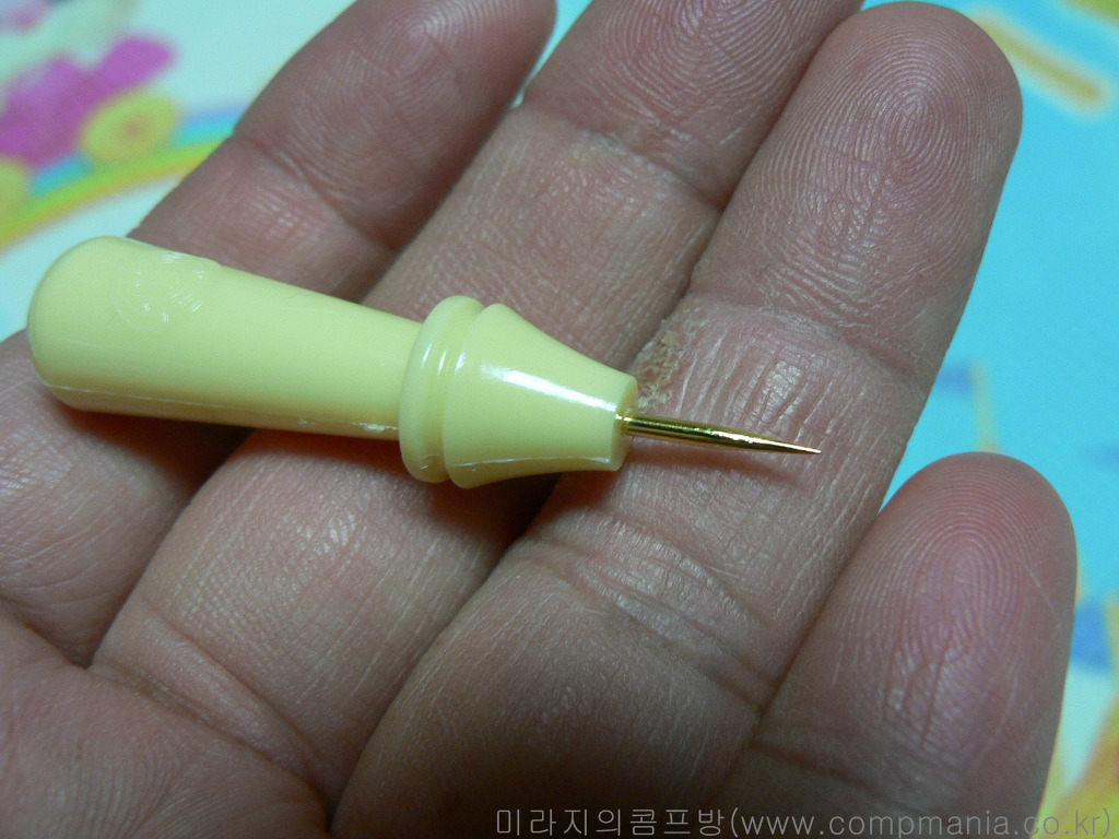 [선긋기 작업하라고 들어 있는 간이형 철필.. 사무용 핀에 손잡이를 달아놓은듯한 제품으로 그야말로 간이형 입니다. 큰 힘을 주지 않는게 좋습니다.]