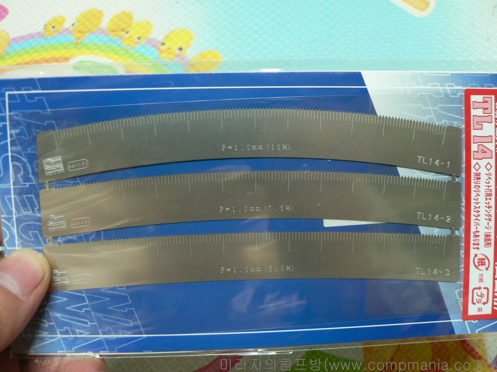 [각기 굴곡도와 간격이 다른 템플릿이 3장 들어 있습니다. 템플릿은 역시 스텐레스 재질로 0.5 밀리 수준으로 매우 얆습니다]