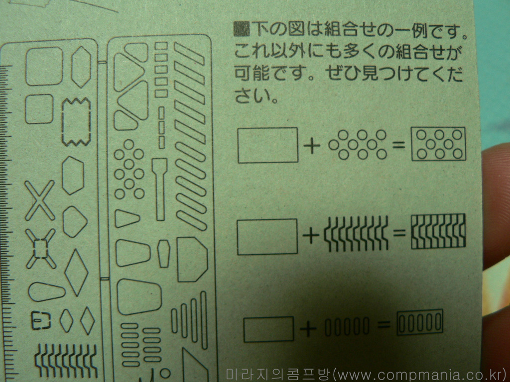 [구성은 템플릿 2장과 선을 그을수 잇는 간이형 철필이 하나 들어 있습니다. 가격은 900엔 국내소비자가 약 11,700원 2010년 6월기준]