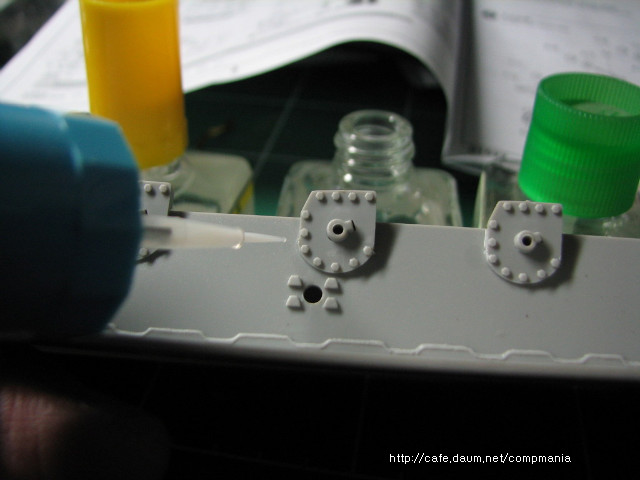 [접착제는 군제사에서도 판매중에 있다 군제는 노란색이 수지 하늘색 두껑이 무수지 접착제 이다. 효과나 성분은 타미야와 거의 비슷 가격은 오히려 좀더 싸다]