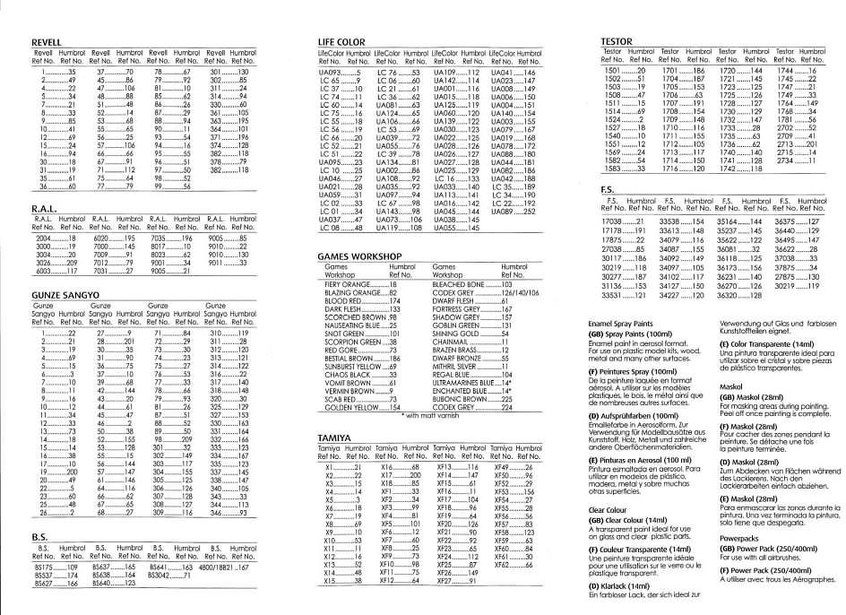 [다른 메어커들과의 호환성 때문제 험브롤사에서는 이처럼 색 변환 차트까지 제작해 배포중이지만 이를 비교해 색이름을 알아내는게 쉬운일이 아니다]
