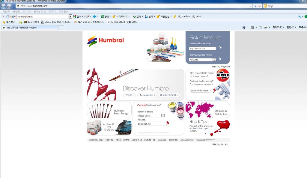 [오죽하면 험브롤 공식홈페이지에서는 첫화면 색번호나 색이름을 치는 가장 유사한 험브롤사의 색을 찾아주는 변환기를 설치할 정도라니.. 험브롤 홈페이지 주소는 http://www.humbrol.com/ 이다]