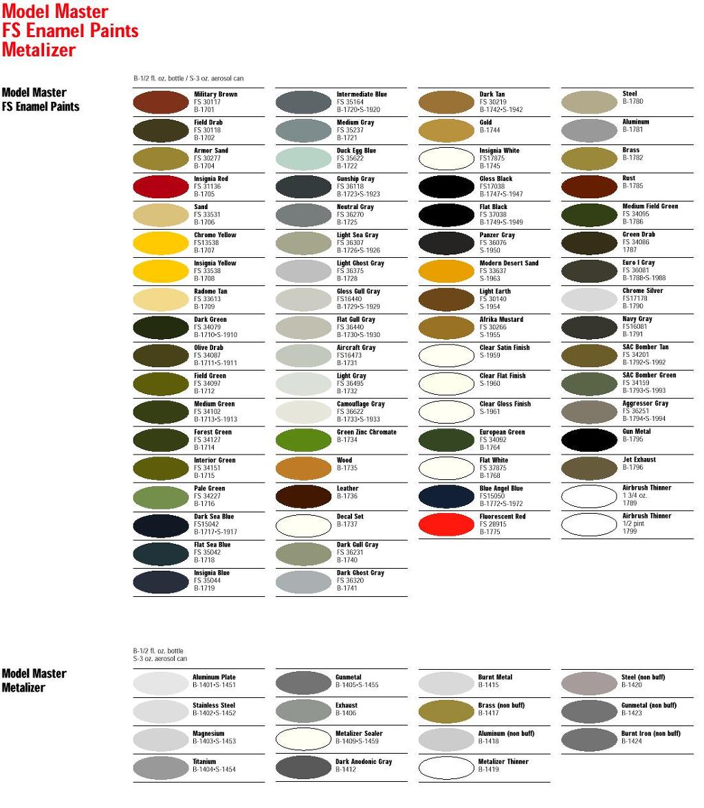 모델마스터 칼러는 역시 모형용 도료로 유명한 데트토사에서 나온 씨리즈로 마찬가지로 에나멜 계열이지만 일반적인 에나멜 계열이 입자가 굵어 에어브러슁을 이용한 도색이 어려운데 반해 테스토사 에나멜은 입자가 작아 에어브러슁에서도 무리없이 사용이 가능합니다. 특히 300여가지 넘는 다양한 색을 가진 고급제품군은 모델마스터 (MODEL MASTER) 씨리즈는 군제락카에 비교될 정도로 해외 모델러 특히 항공기 매니아들에게 인기가 좋습니다.
