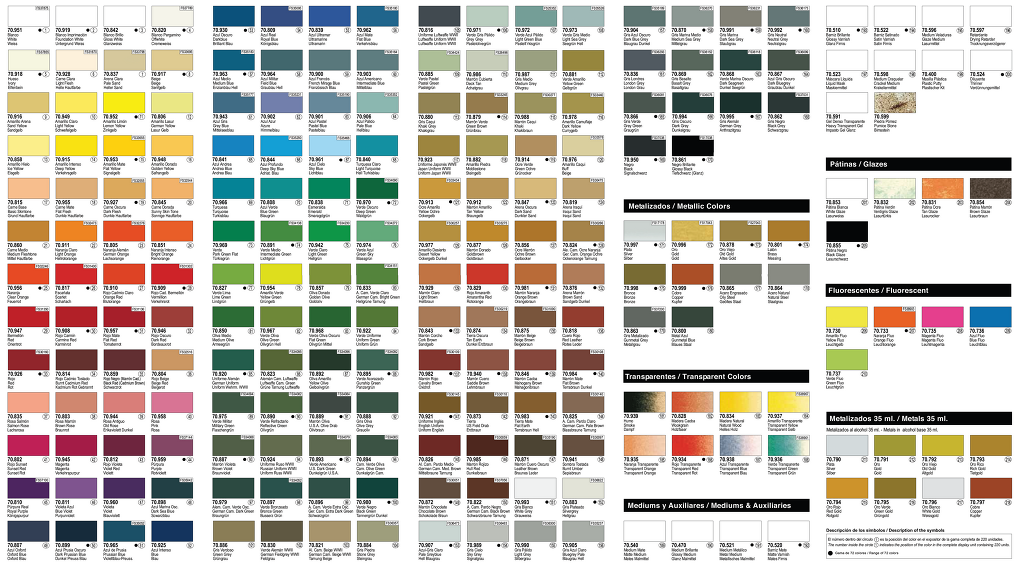[아크릴 도료중 최고의 제품으로 불리는 제품이 바로 Vallejo (보통 발레죠 혹은 요새는 원어의 느낌을 살려 바예호 라고 발음한다) 사의 아크릴도료로 발레조 아크릴도료중 최고의 색감과 발색을 가진 도료로 정평이 나 있는 도료중 하나이다 (외국의 이름난 모델작가들은 거의 모두 이 회사 제품을 쓴다..) ]