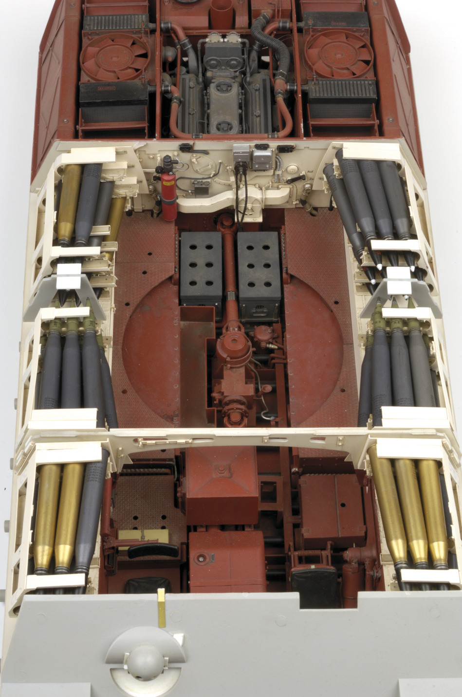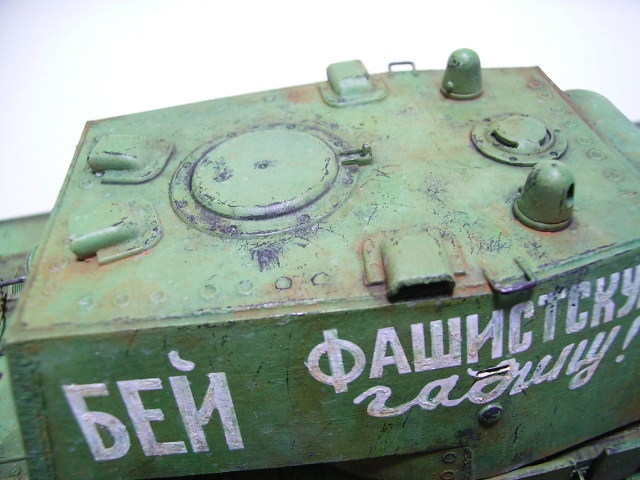 [아크릴 도료로 칠해진 티이거 냐부의 모습 금속색의 질감을 내야 하는 부분이 튁튁한 색임을 잘 알수 있다 아크릴 도료의 치명적 약점중 하나라 하겠다]