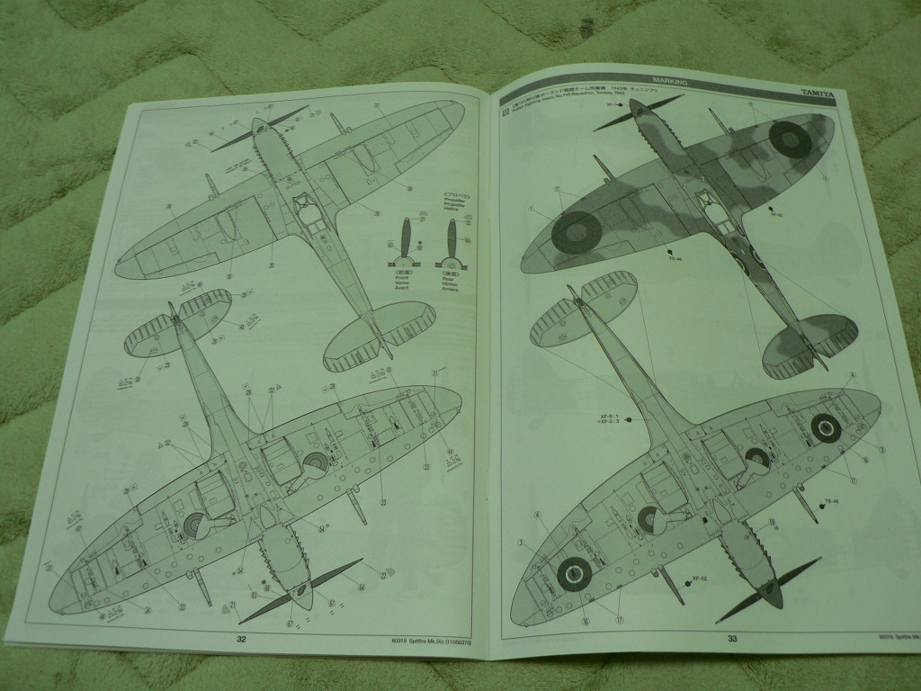 [역시 얼마전에 출시된 타미야의 1/32 스피릿파이어의 메뉴얼.. 역시 자사의 에나멜 번호만 지정색으로 지시하고 있는데 이는 타미야의 판매전략중 하나로 보인다.. 요새 누가 항공색으로 에나멜 도료를 쓴다고.. 참나..]