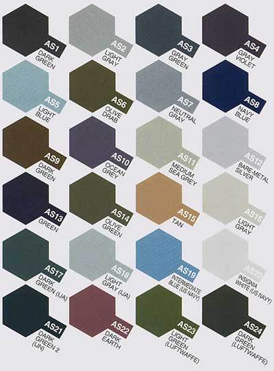 [90년대들어 안되겠는지 항공기 팬들을 위해 AS 칼러라는것을 내놓게 되지만 스프레이캔용 도료일뿐 본격적인 도료라고 하기에는 뭔가 아쉬웠다.. 사실은 90년대 들어 에어로 모형에 도전하면서 자사의 에어로 제품과 팔아먹기 위해 만든 제품에 불과하다 이렇듯 타미야의 도료에 대한 정책은 철저하게 자사의 제품을 팔아먹기 위한 시너지 효과로 밖에 활용할줄 몰랐다]