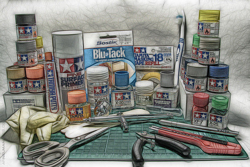 이는 군제락카가 보편화 된 이후에도 변함없이 타미야 에나멜 도료가 팔리는 이유이며 현재까지 이 작업에 타미야 도료만큼 탁월한 도료는 적어도 아시아쪽에서는 거의 없습니다. (물론 미국제 테스토 도료나 모델마스터 도료가 간간히 수입되고는 있지만 이 도료들은 가격도 비싸고 성질도 약간씩 다른지라 락카도료로 밑질을 하고 그위에 에나멜 도료로 겹칠하여 마무리짓는 작업에는 사용하기 쉽지 않다는 문제점이 있습니다. )