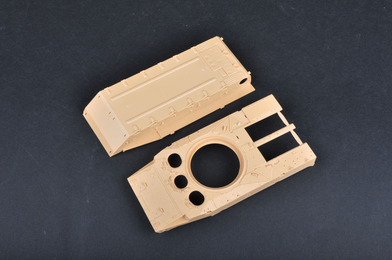 차체는 알루미늄합금을 용접해 제작했으며, 장갑두께는 10~45㎜이다. 피탄(被彈) 가능성이 많은 부분은 방탄강판으로 보강해 차체 정면은 50㎜ 균질압연 강판 수준의 방어력을 갖추었다. 승무원 3명 외에 무장보병 7명이 탑승할 수 있는 병력실도 차체 앞에 배치하였다.