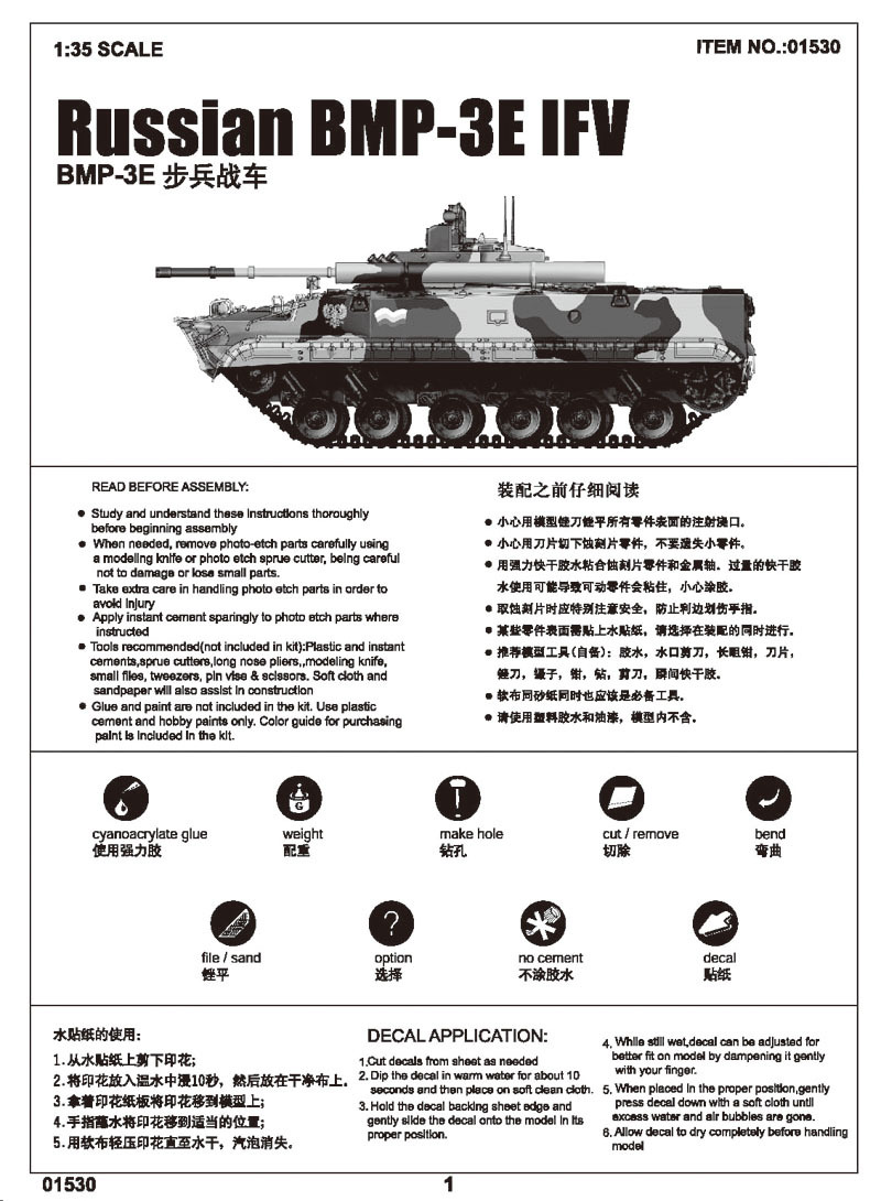 이어지는 트럼페터의 3월 신제품중 하나인 01530번 Russian BMP-3E IFV 입니다.