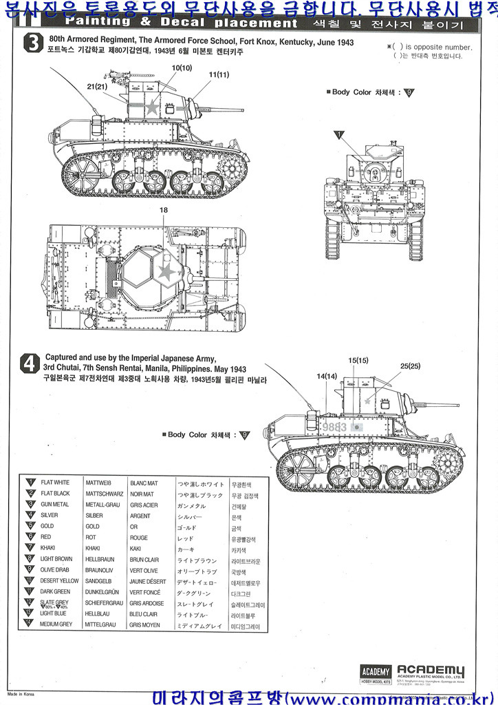 제품은 앞서 소개한 #1398번 M3A1 STUART LIGHT TANK 과 90% 같습니다.