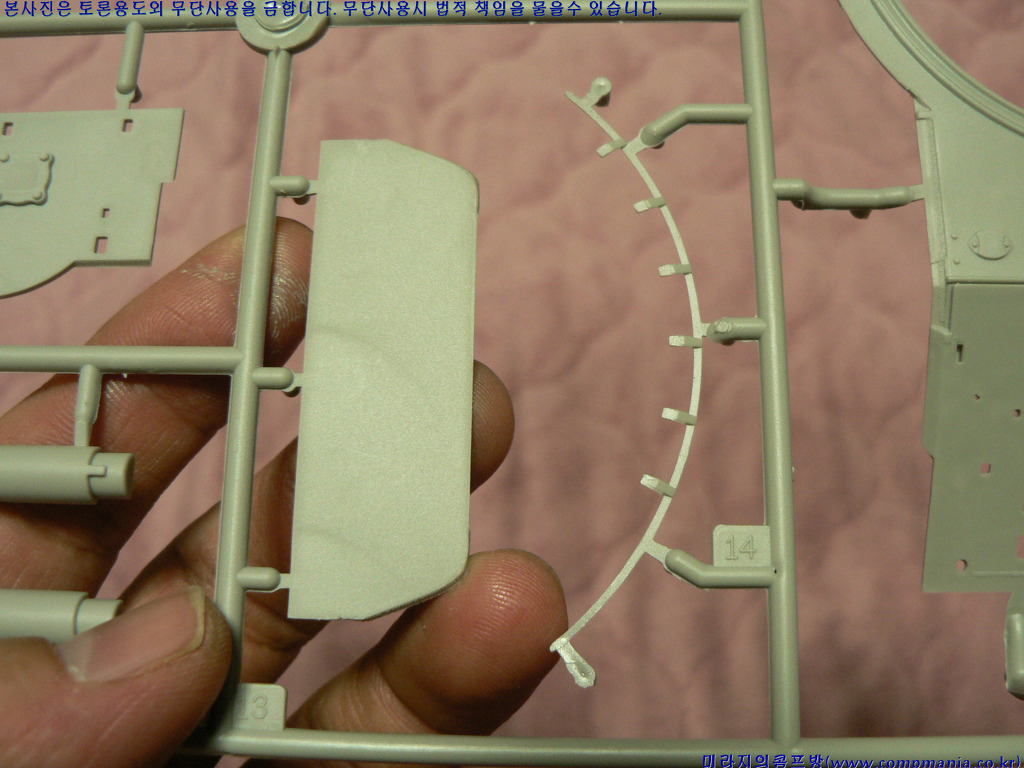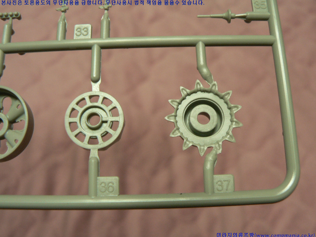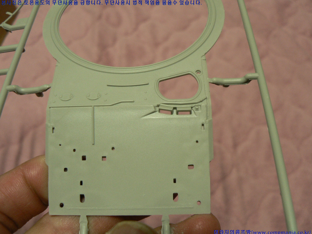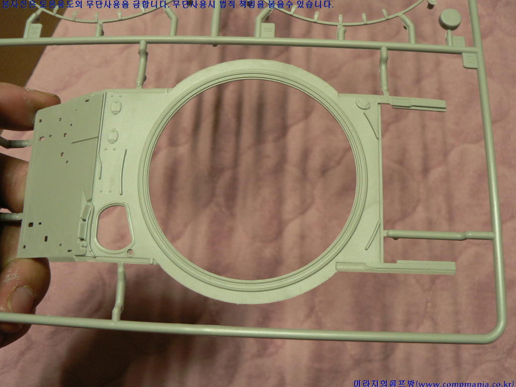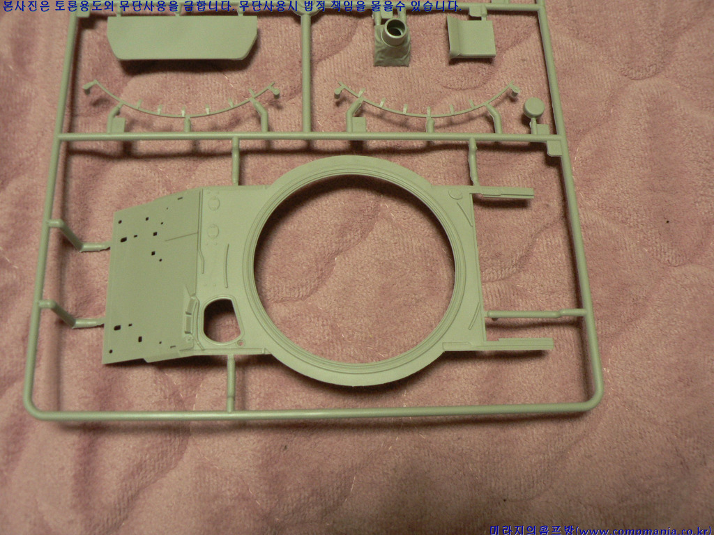 [포탑링도 별도로 분리되어 있습니다. 특이한게 다른 제품들의 T자 형태의 연결부가 아닌 그냥 원형으로 포탑을 끼우게 되어 있습니다. 포탑끼우기는 좋치만 좀만 힘을 주면 포탑이 바로 빠진다는 문제가 있습니다.]