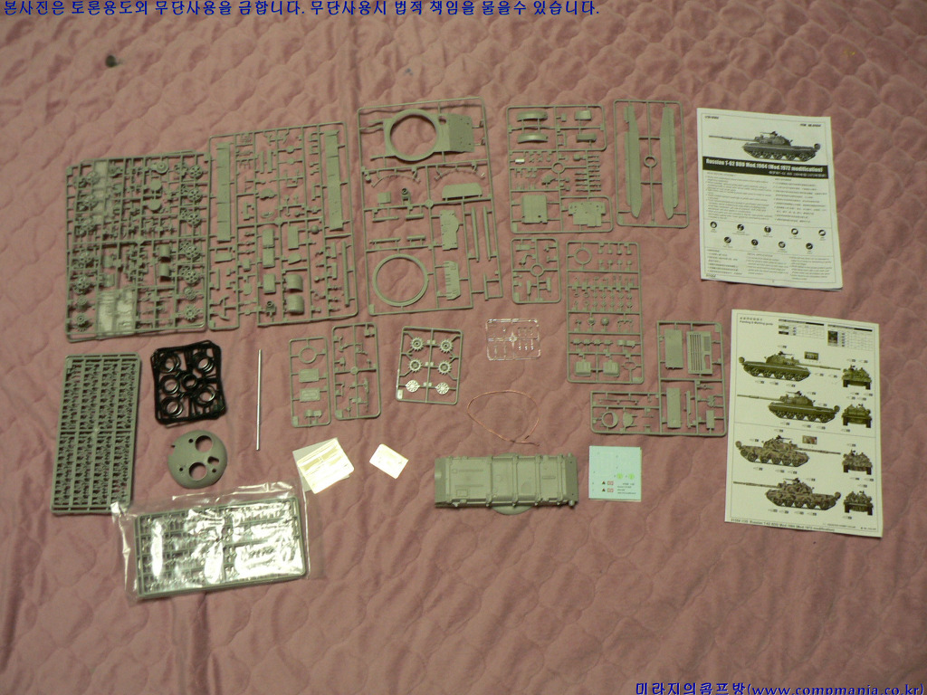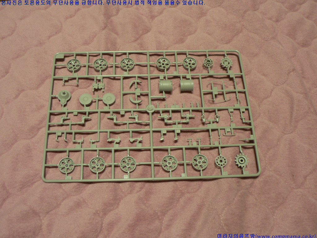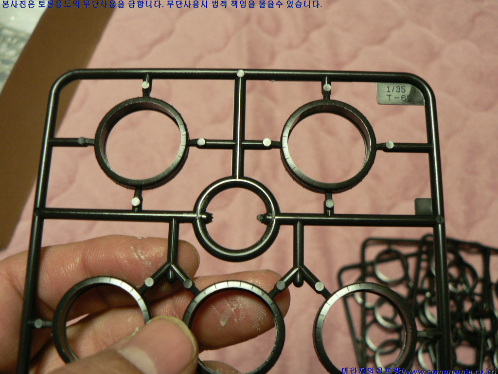 [런러를 펼쳐보면 이렇게 생겼습니다. 약 560개의 부품구성으로 전반적으로는 앞서 나온 T-62 제품과 80% 이상 같습니다.]