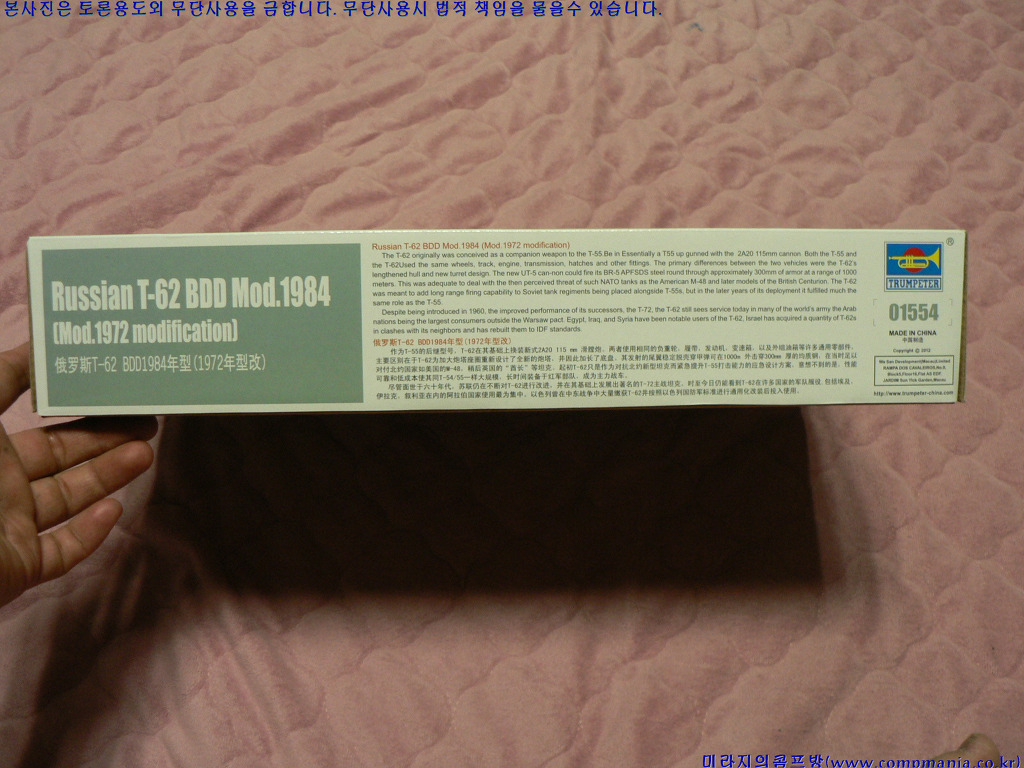 이중 가장 기대되는 신제품중 하나인 01554번 Russian T-62 BDD Mod.1984 (Mod.1972 modification) 를 소개합니다.