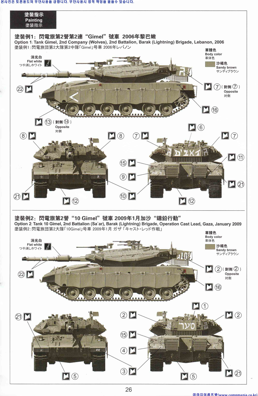 아래 작례는 아카데미 메르카바3 와 4 그리고 레젼드사의 별매 컨버젼 레진킷을 이용해 만든 MERKAVA MK3D 작례들입니다.