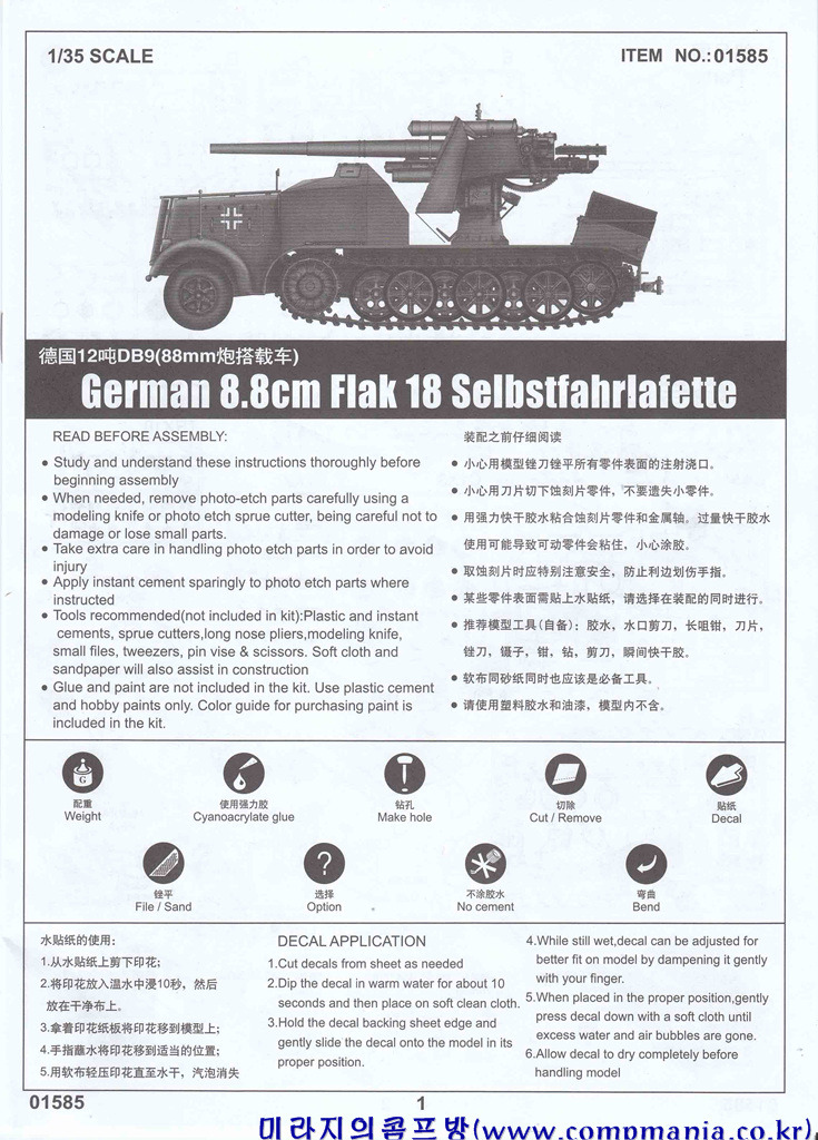 이 제품은 2차대전 독일의 하프트랙에 대표적인 대공포인 8.8cm Flak 18 를 얹은 타입입니다.