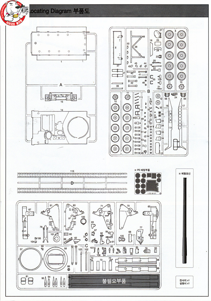 [M107의 매력인 175mm 포 부품은 같은 런너에 몰려 있습니다.]