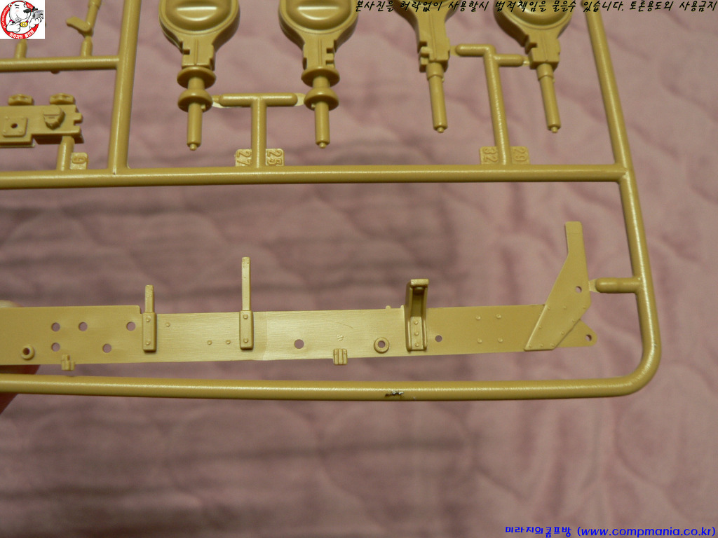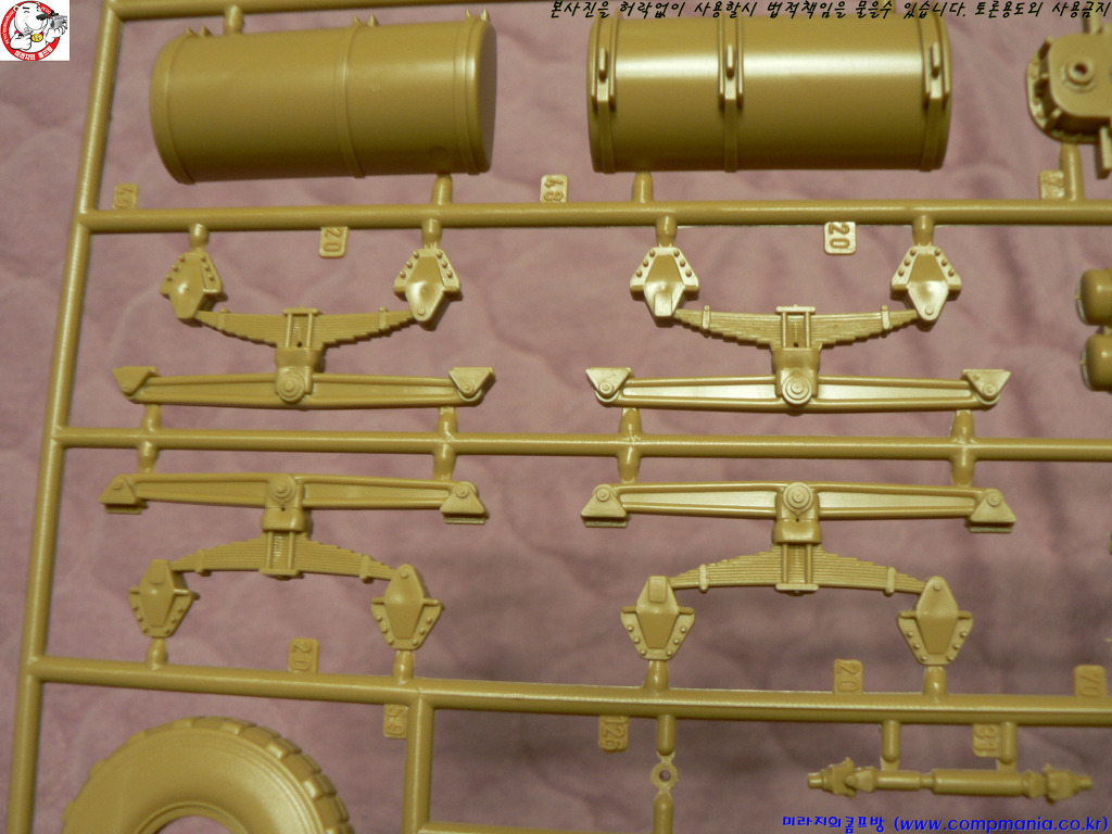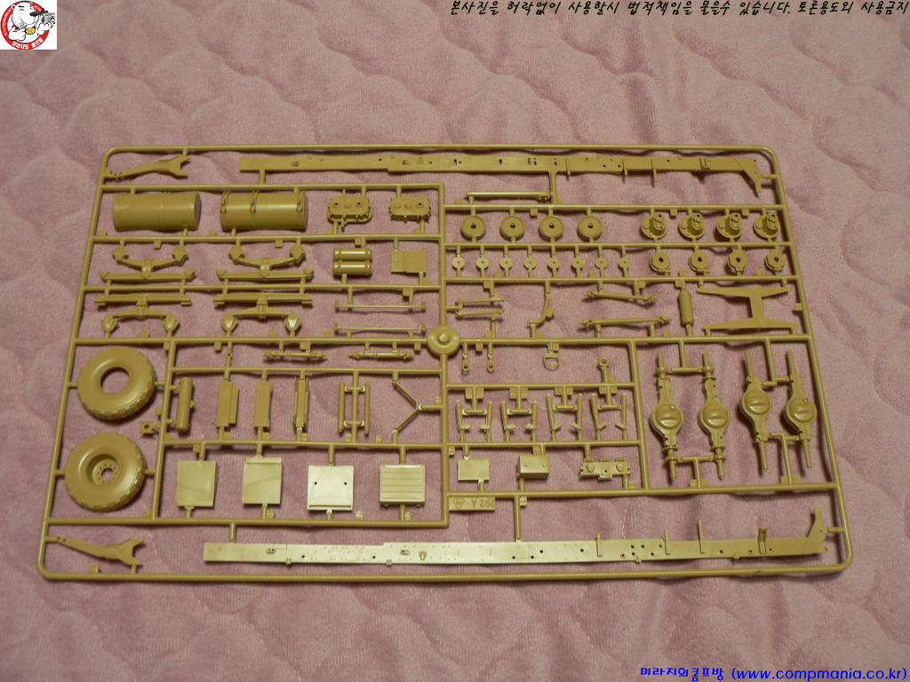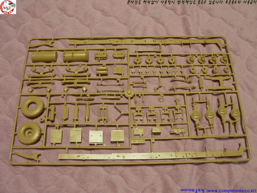 [큰 트럭 답게 차대는 큼직하게 구성해두고 있습니다. 이 제품의 특징중 하나는 마치 타미야 제품을 보듯 시원시원하게 부품들을 사출해놓고 있다는 점으로 큼직한 부품구성으로 조립성을 극대화 하고 있다는 점이 큰 장점 입니다.]