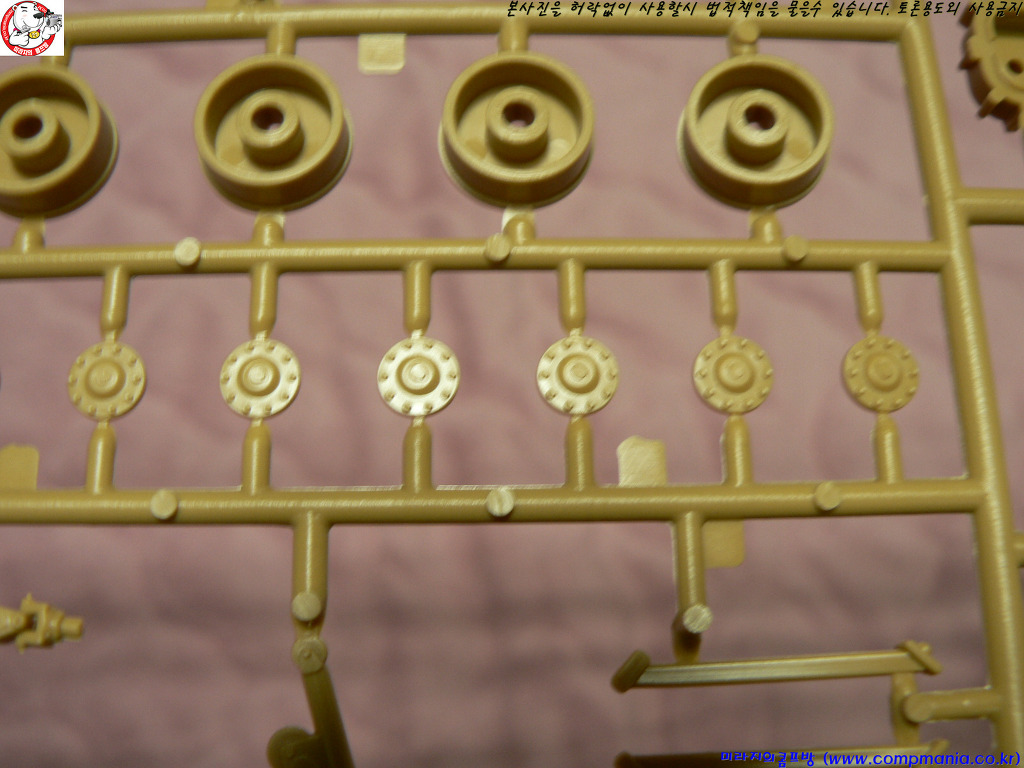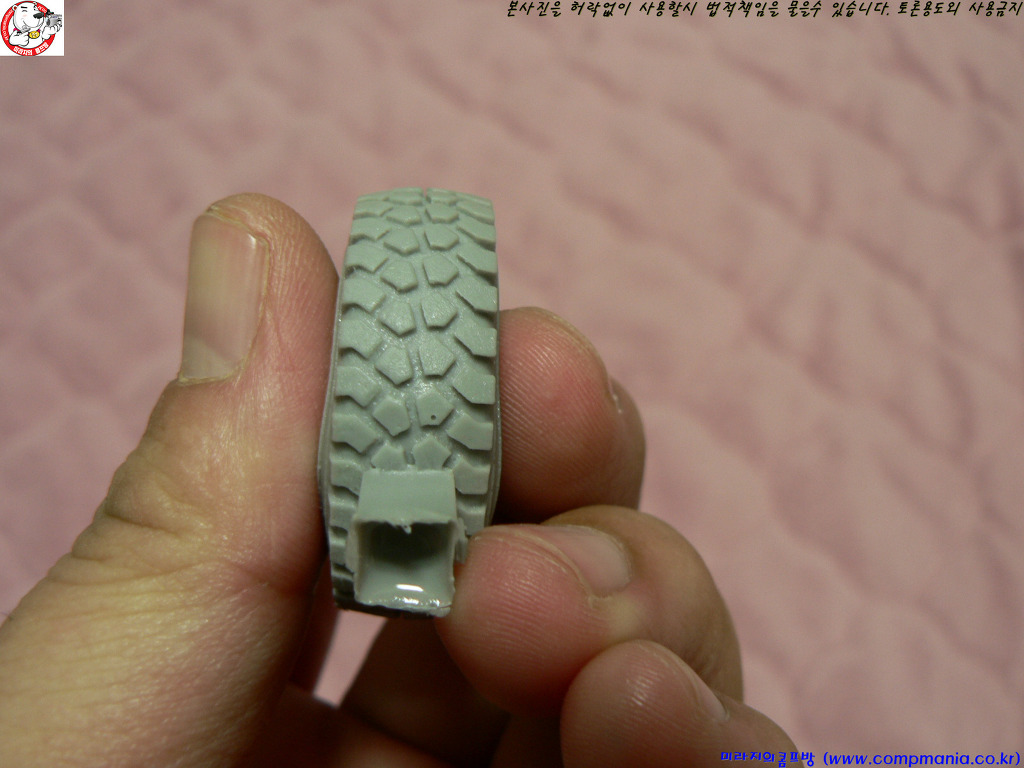 [이탈래리 제품들은 유독 신발의 재현이 엉성한데.. 전차의 뻣뻣한 궤도들도 그렇고 이 제품에서는 타이어의 형태나 볼륨 그리고 디테일이 너무 엉망이라 별매로 레진타이어가 필수 입니다. 다행히 하비갤러리 제품에서는 기본적으로 우수한 볼륨과 디테일을 가진 레진타이어를 넣어주고 있습니다.]