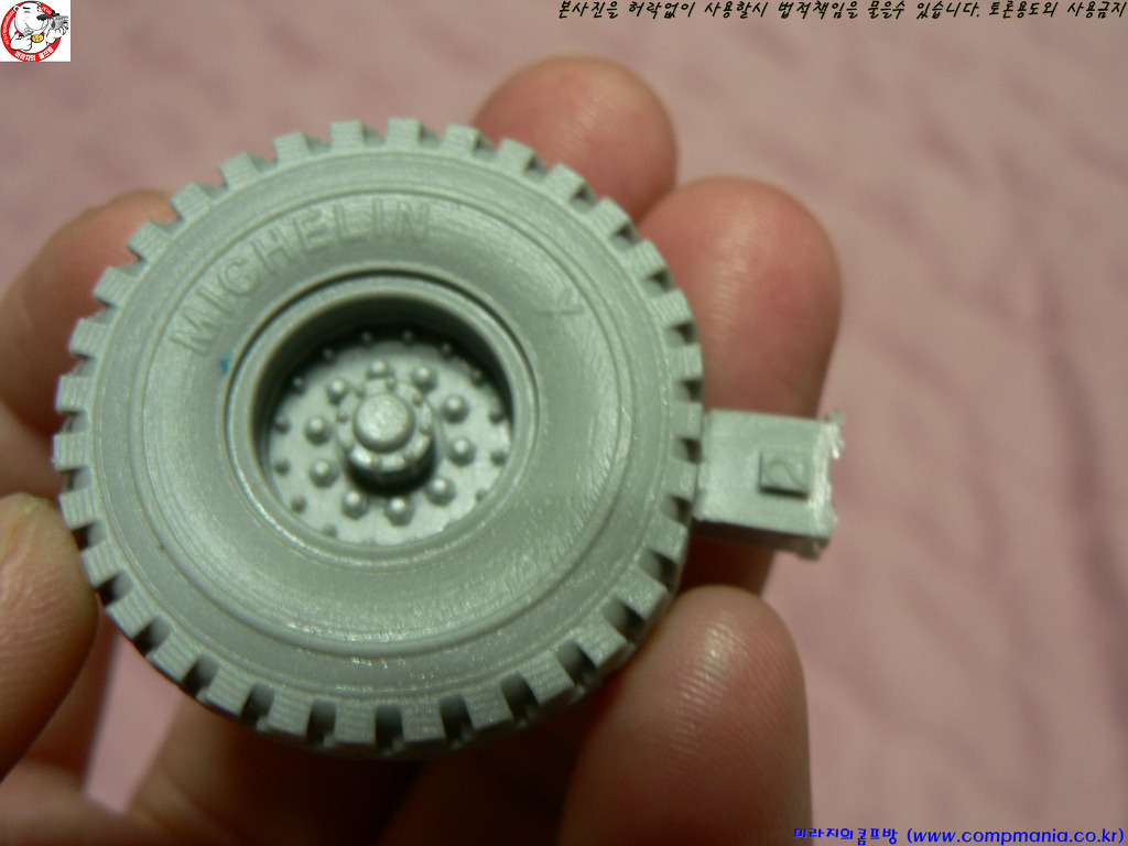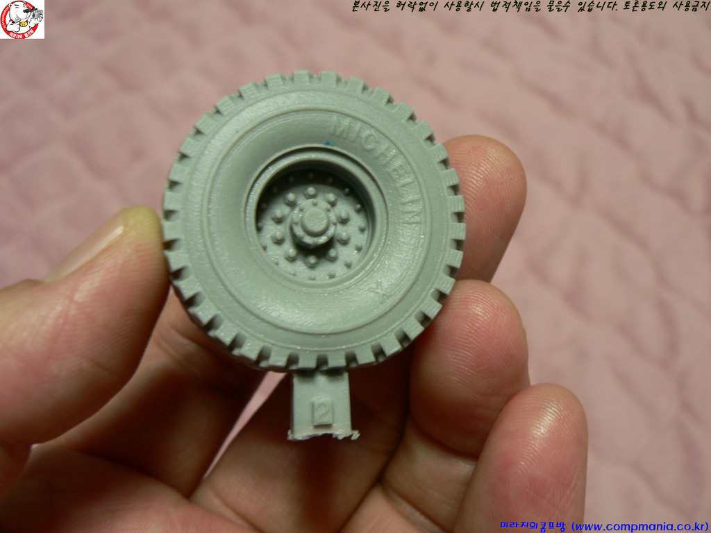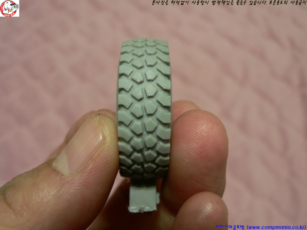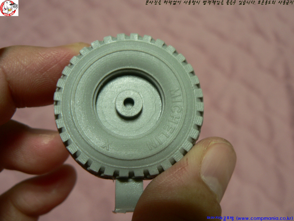[그래서 하비갤러리에서는 별도로 레진제 바퀴들을 넣어주고 있습니다. 일단 볼륨부터가 다르고..]