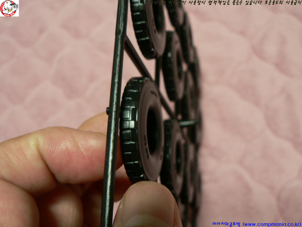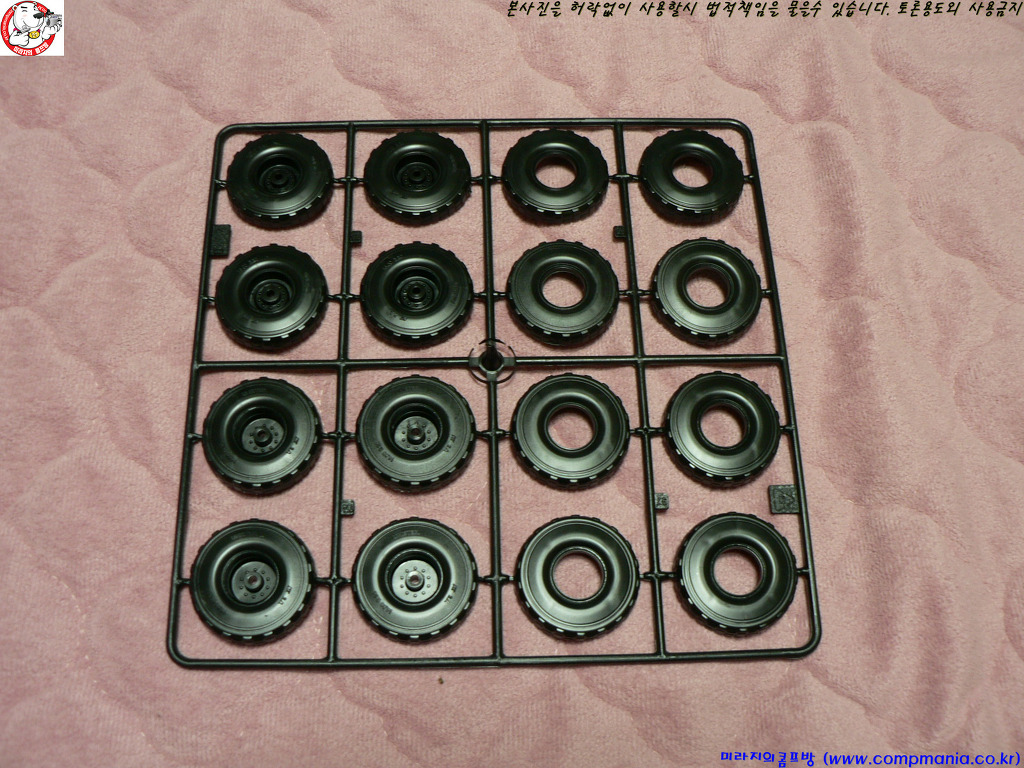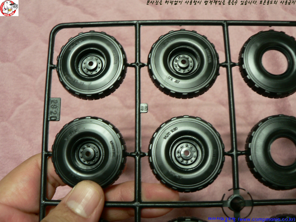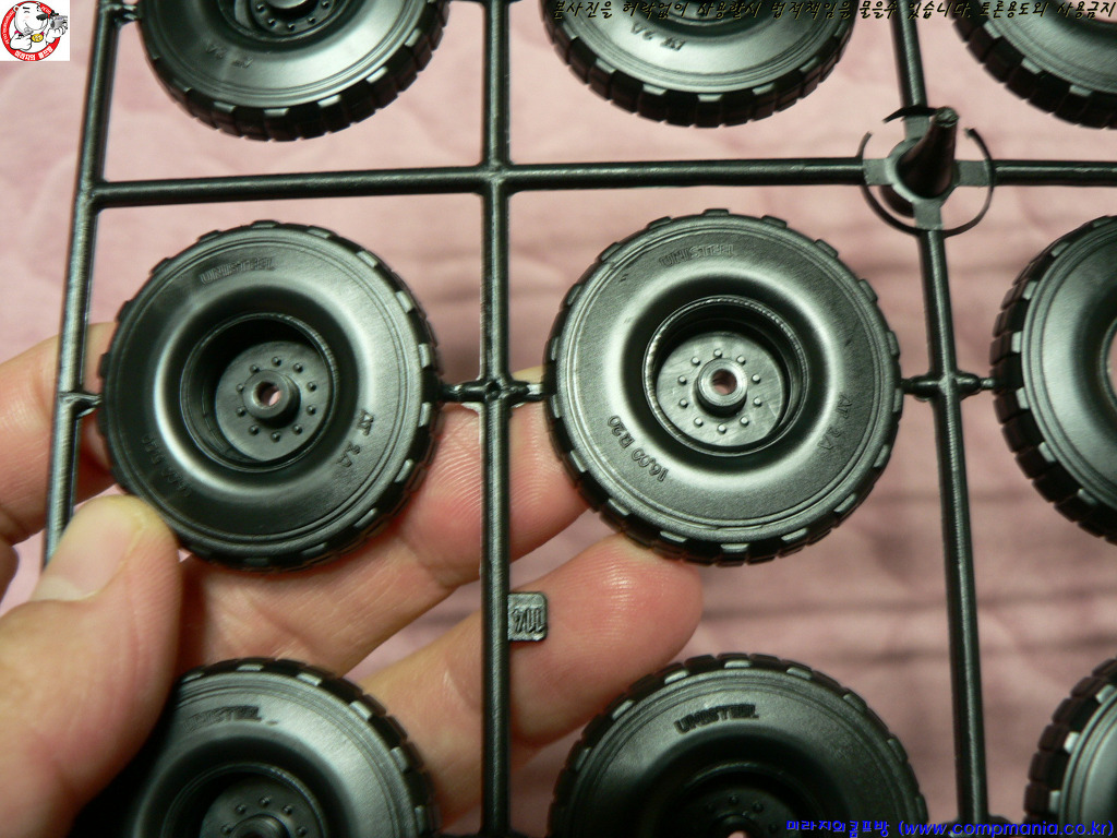 [그래서 하비갤러리에서는 별도로 레진제 바퀴들을 넣어주고 있습니다. 일단 볼륨부터가 다르고..]