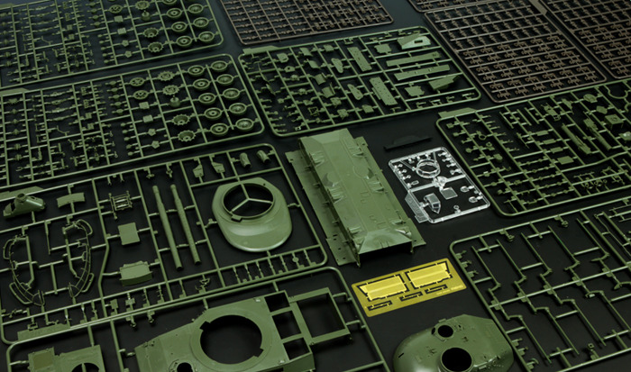 KIT INFO 1/35 scale French AMX-30B MBT plastic model kit. 271mm in total length and 89mm in width. Casted turret shape is realistically reproduced on the model; the gun and 20mm autocannon can elevate independently; hatch on commander cupola can rotate in 360 degrees; realistic running gear parts on the chassis are movable; elastic torsion bar structure combined with movable hydraulic shock absorbers can realize the shock absorption action like the real vehicle; workable track links are easy to assemble. Two painting options are provide. |