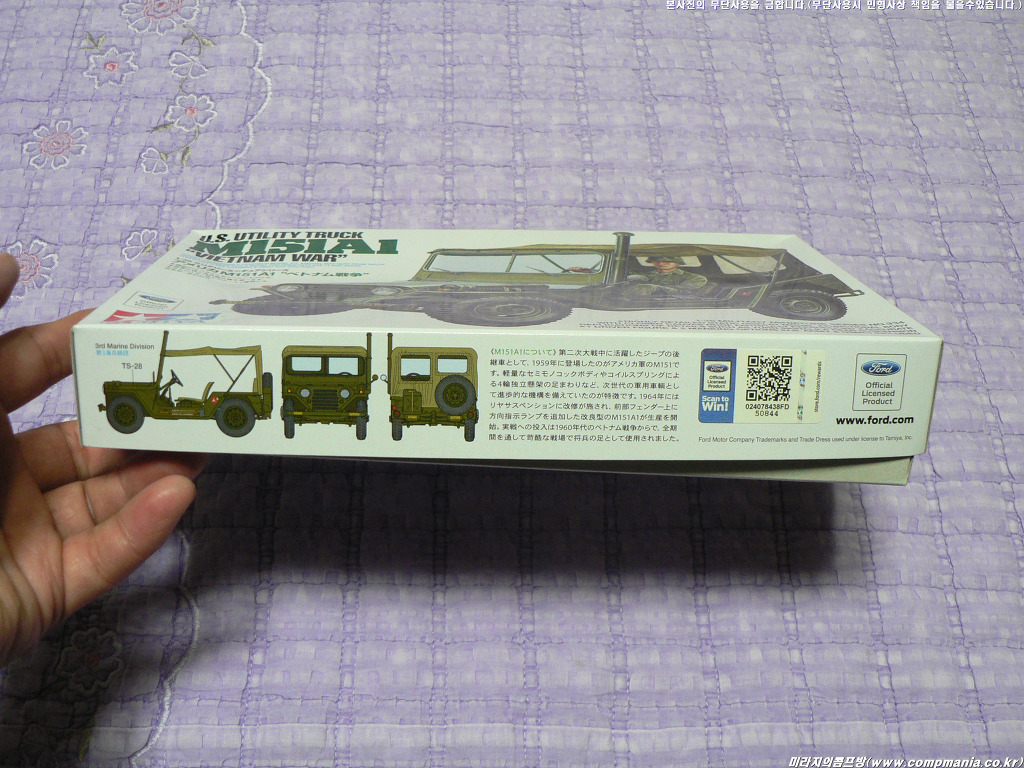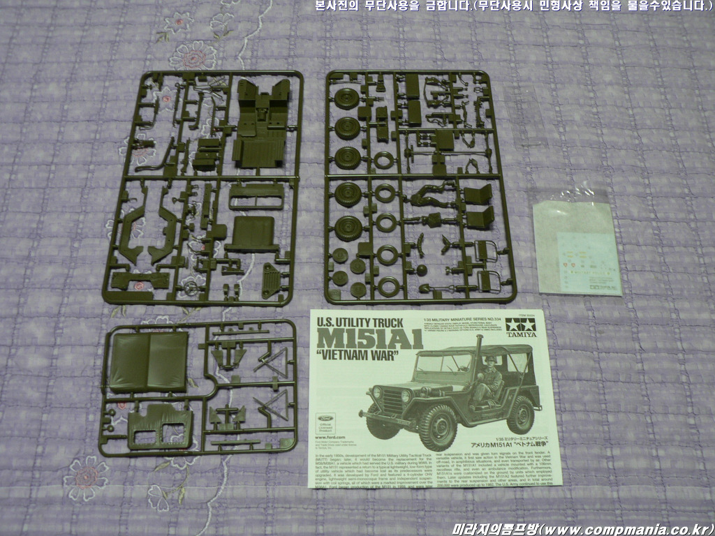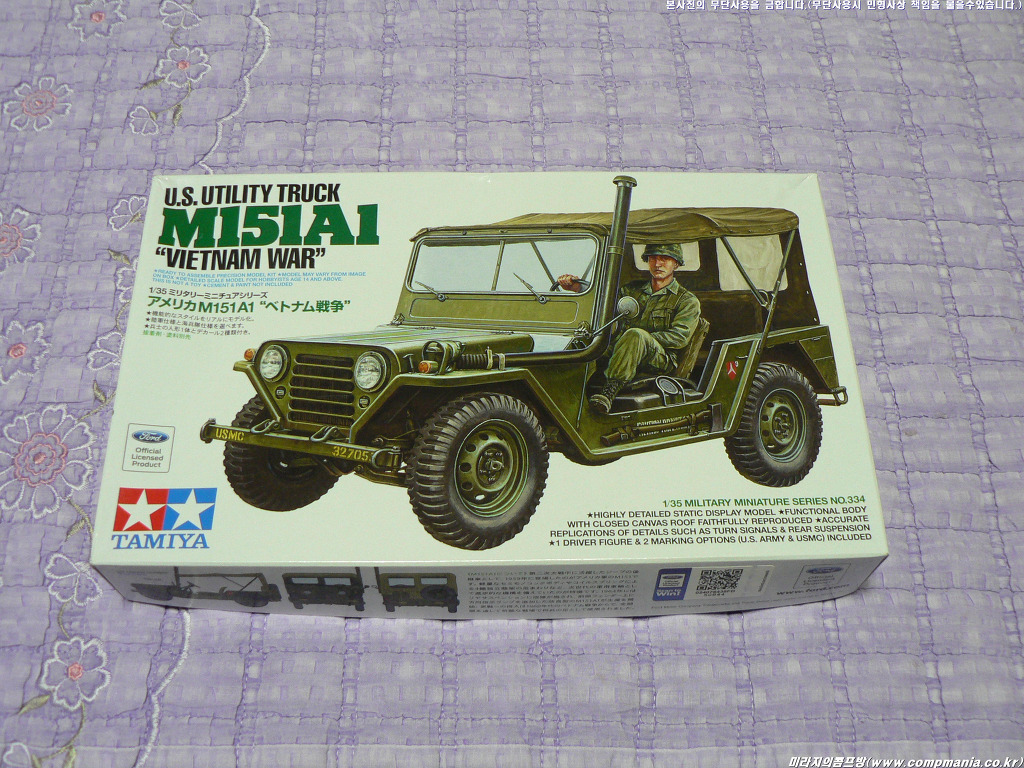 간만에 신제품 소개 좀 올려보죠.. 지난번에 황보상훈님이 살짝 알려주셨던 타미야의 신제품 35334번 US Utility Truck M151A1 - "Vietnam War" 제품이 입수되었습니다.