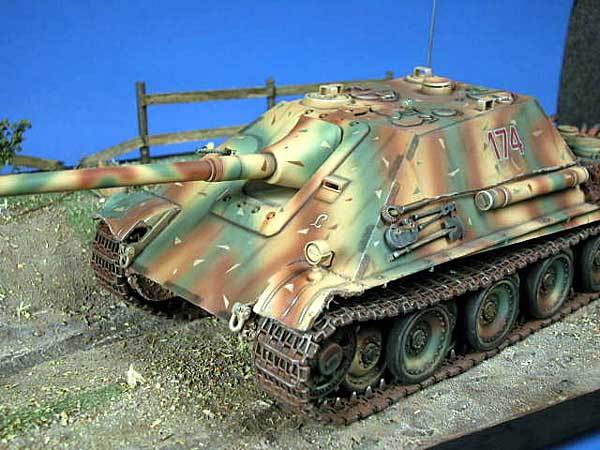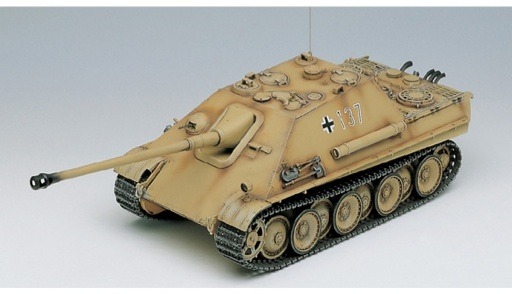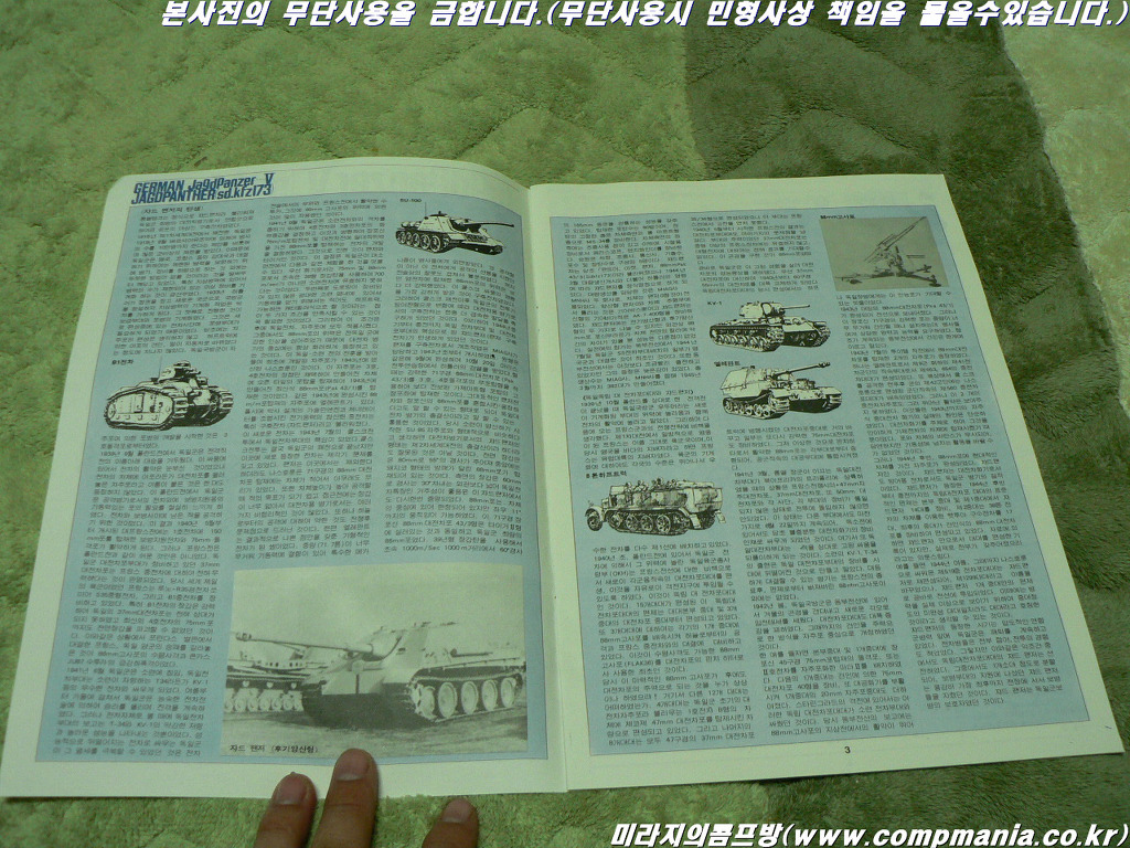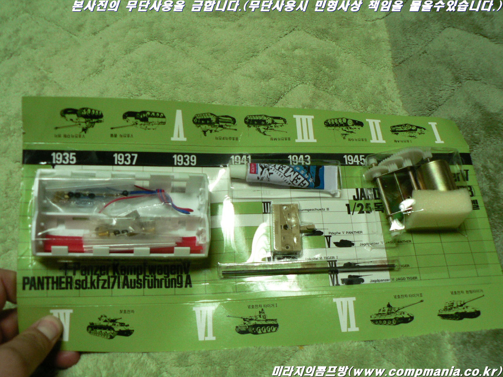 [당시에는 구축전차라는 개념이 없을때라 포탑도 없고 이상한 형태의 이 제품은 별로 인기가 없었습니다. 오히려 포탑이 제대로 달린 판터-A형이 더 인기가 있었죠.. 그래도 1/25 라는 생소한 스케일에 인형도 들어있고 당시에는 드문 가동식 궤도라는 점은 상당히 쇼킹했습니다.]