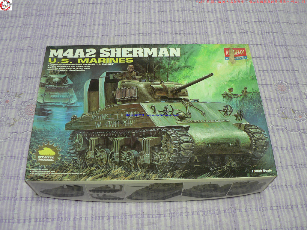 이제는 절판되어 보기힘든 제품이 되어버린 아카데미의 T13203 번 M4A2 SHERMAN US MARINES 라는 제품 입니다.