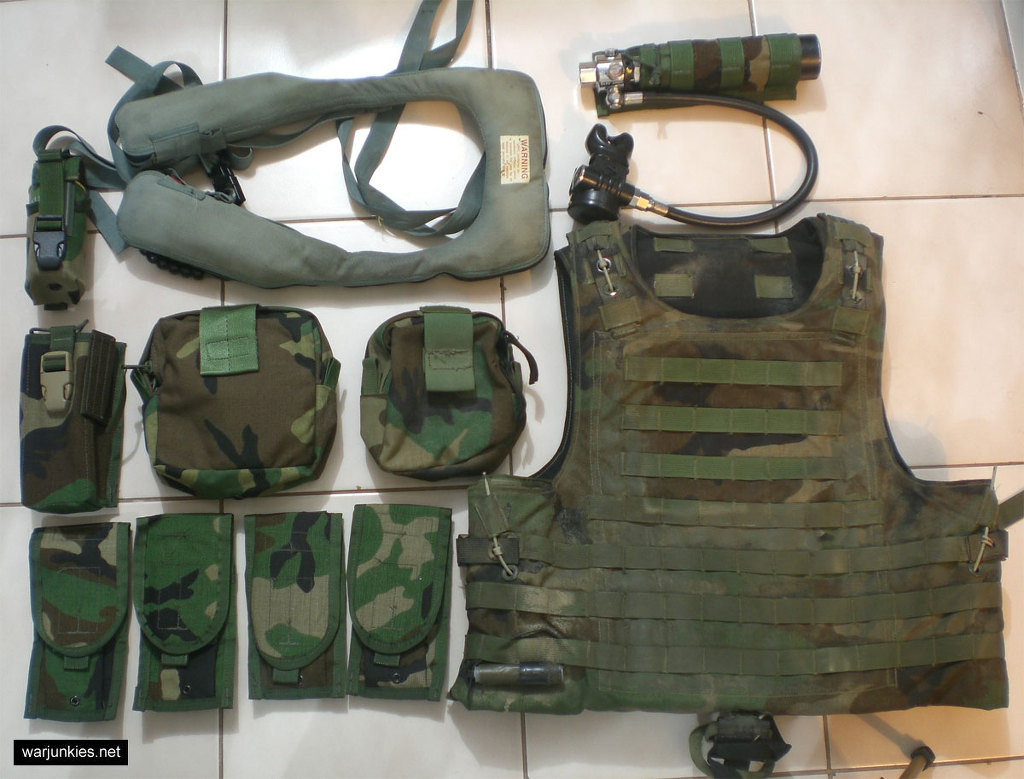 [한편 장비의 선택의 폭이 넓은 네이비씰 같은 특수부대는 별도의 장비를 구입하기도 하는데 사진의 시라스사 장비가 바로 그것이다. 이 역시 몰리 시스템을 도입하여 임무에 따라 다양한 장비를 쉽게 떼었다 붙일수 있다]