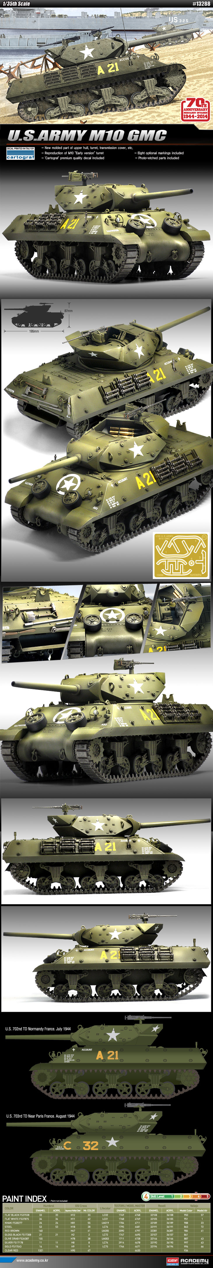 간만에 아카데미에서 신제품 소식을 전해왔습니다. 12월초 출시예정인 13288번 U.S.ARMY M10 GMC 의 작례가 공개되었습니다.