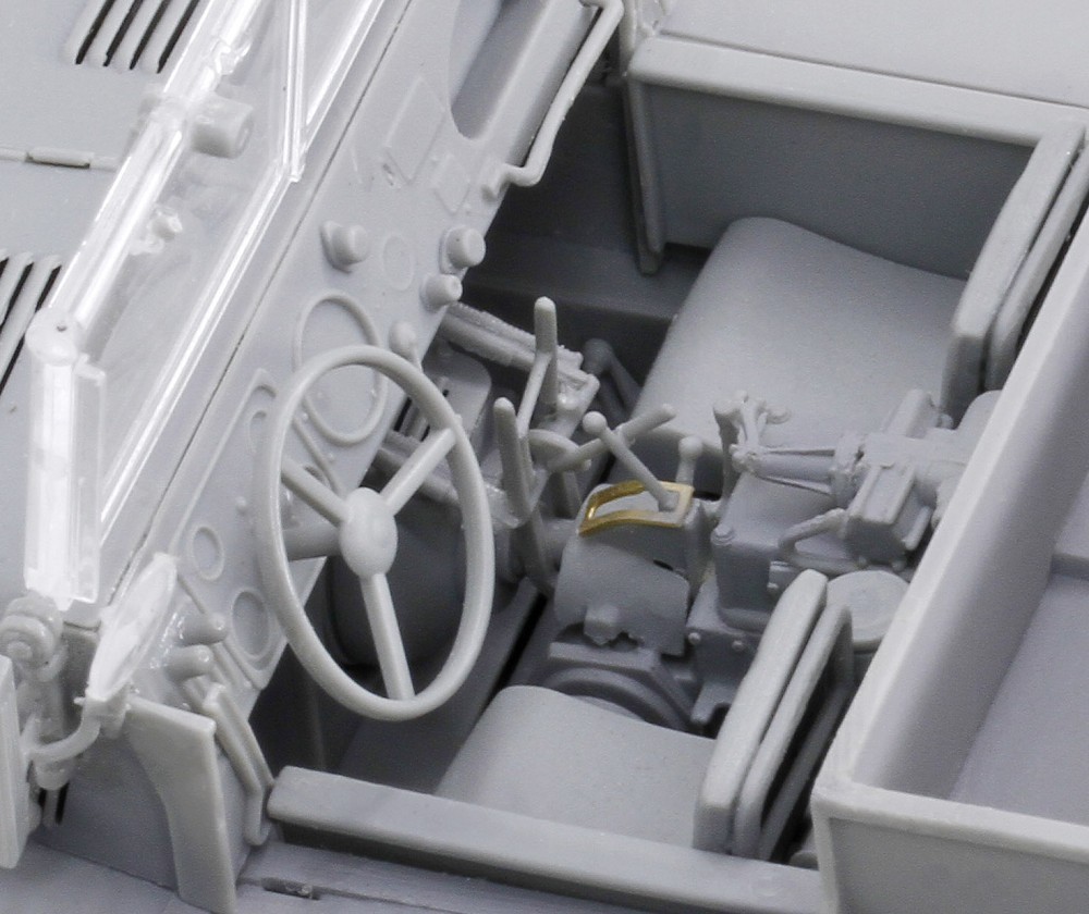 Every area of this kit seems to be fully detailed. The cab being a case in point, although it's hard to get away with anything less these days in a model of an open topped vehicle. For the dashboard there's a multitude of decals for dials and data plates to give an authentic appearance, and even the gear shift which was awol on the first release is present and correct in this one.