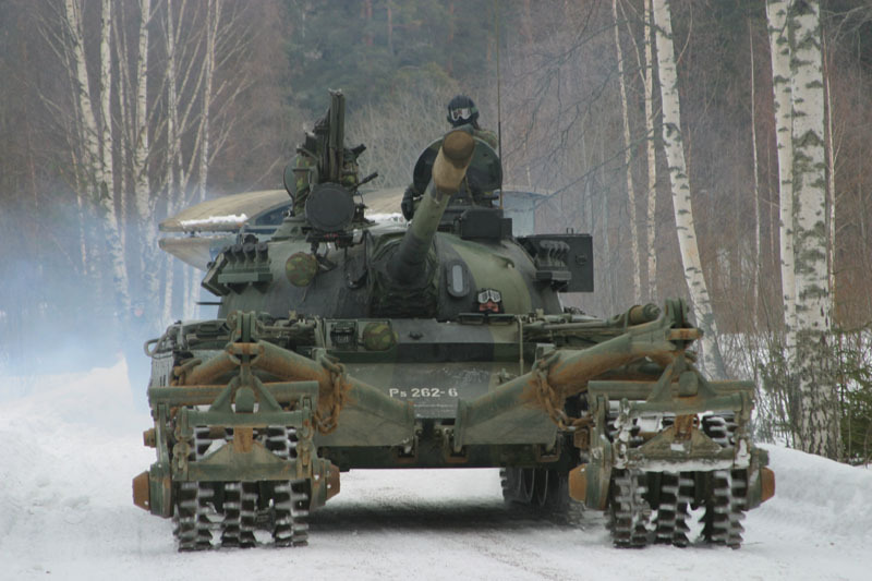 [현재 T-62는 러시아에서는 T-72 나 T-80 등에 주력전차 지위를 물려주었지만 과거의 소련 연방국에서는 여전히 주력전차로 운영중에 있다. 사진은 시내를 주행중인 T-62 와 뒤를 따르는 PT경전차의 모습이다]