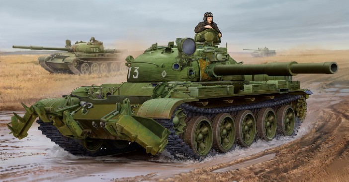 [T-62 전차의 기본이 된 T-54/55 전차 이는 대전 이후 소련이 개발한 전차중 가장 성공한 전차였으며 이를 바탕으로 개량한 전차가 바로 T-62 전차이다. 트럼페터 제품의 박스아트와 포즈가 상당히 유사한 사진이다]